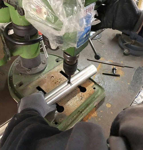 2、主管體無(wú)縫管切割,通液口開(kāi)孔