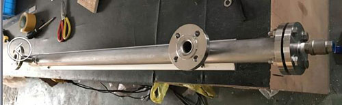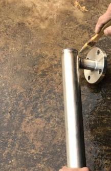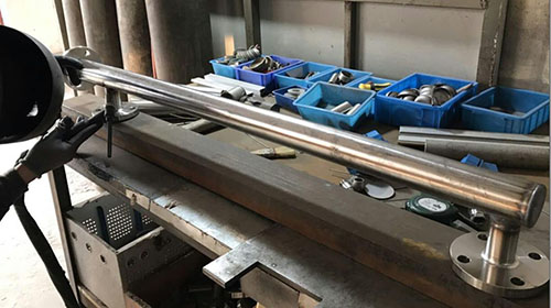 3、焊接法蘭,對(duì)主管頂端封頭進(jìn)行焊接;法蘭和通液管的連接(焊接)并矯正兩法蘭的水平度