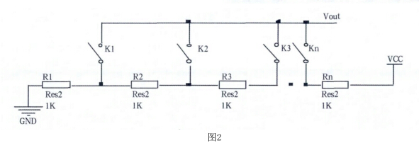 傳感器部分由串聯(lián)的電阻構成,電阻一端接電源。另一點接地,每個電阻分得的電壓是