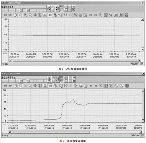 然后利用多孔法蘭(結(jié)合LNG項目的實際情況來選擇法蘭的孔數(shù)以及尺寸大?。?,將其接到LNG罐頂?shù)臏囟茸兯推鹘泳€箱內(nèi)部,再使用多芯電纜把4~20mA信號發(fā)送到控制系統(tǒng)?,F(xiàn)場安裝RTD熱電阻建議選用雙支,方便以后檢修更換。圖2為LNG儲罐溫度顯示。