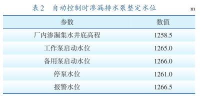 呼蓄電站廠房排水系統(tǒng)包括地下廠房滲漏排水系統(tǒng)、機組檢修排水系統(tǒng)。地下廠房滲漏排水系統(tǒng)設有1個滲漏集水井,有效容積364 m 3 ,設5臺滲漏排水泵,3運2備,系統(tǒng)*大滲漏總排水量為2250m 3 /h。滲漏排水泵正常運行時由廠內滲漏排水控制盤PLC或監(jiān)控系統(tǒng)自動控制啟停,也可就地通過每臺泵的啟動柜手動啟停。自動控制時整定水位見表2。廠房排水系統(tǒng)設備主要參數(shù)見表3。