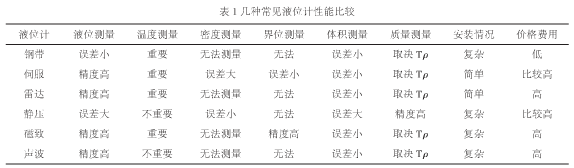 1、常見液位計(jì)的性能特點(diǎn)