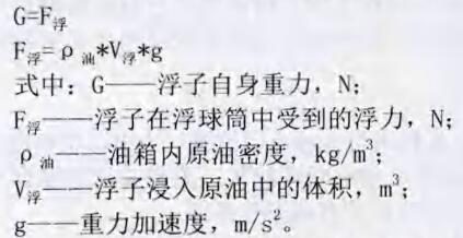 通過上式可以看出,浮球桶進(jìn)入液體體積約為1/2左右,說明其對于密度為0.92g/c3的中到重質(zhì)油測量液位非常合適,避免了人工測量產(chǎn)生的人為誤差,更對于測量人員靠近罐口可能產(chǎn)生的危險進(jìn)行了有效的規(guī)避。