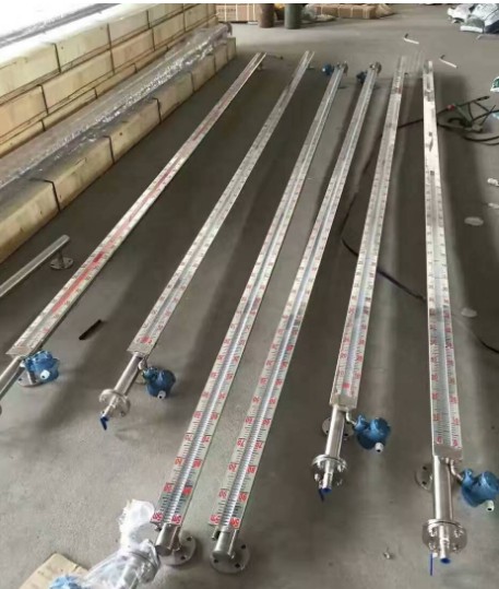 在管體的另一側可按用戶需要加裝電遠傳變送器,將液位高度轉換成標準電流信號輸出,以供液位信號輸出,以供液位信號遠傳至二次儀表進行指示控制與檢測。